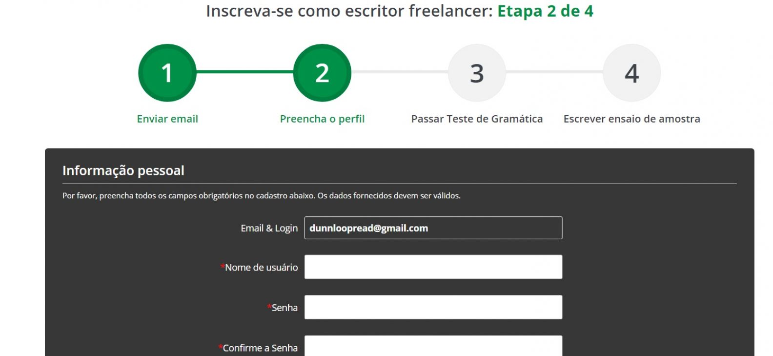 Você terá que preencher o formulário de inscrição, onde você será solicitado a fornecer: