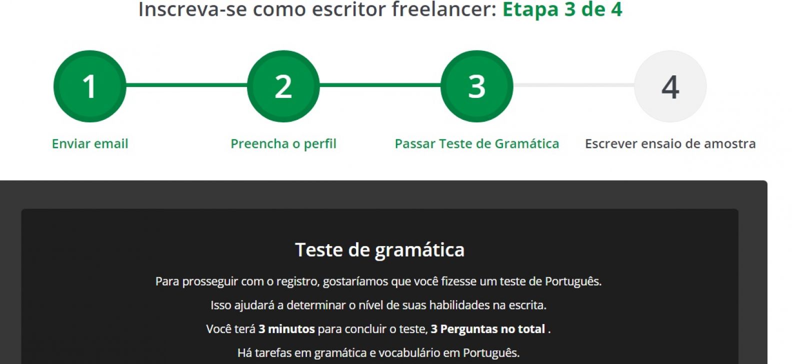 Você terá que passar no teste de gramática, para que possamos avaliar o seu conhecimento da gramática portuguesa.